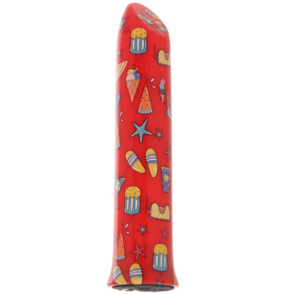 Hot pink and decked out in ice cream cones, seashells, and watermelon slices, this summer-loving bullet is as cute as it is powerful. Its compact, travel-ready size slips into your purse or beach bag, and the lipstick-style angled tip makes it perfect for precise teasing on clits and outer sweet spots.