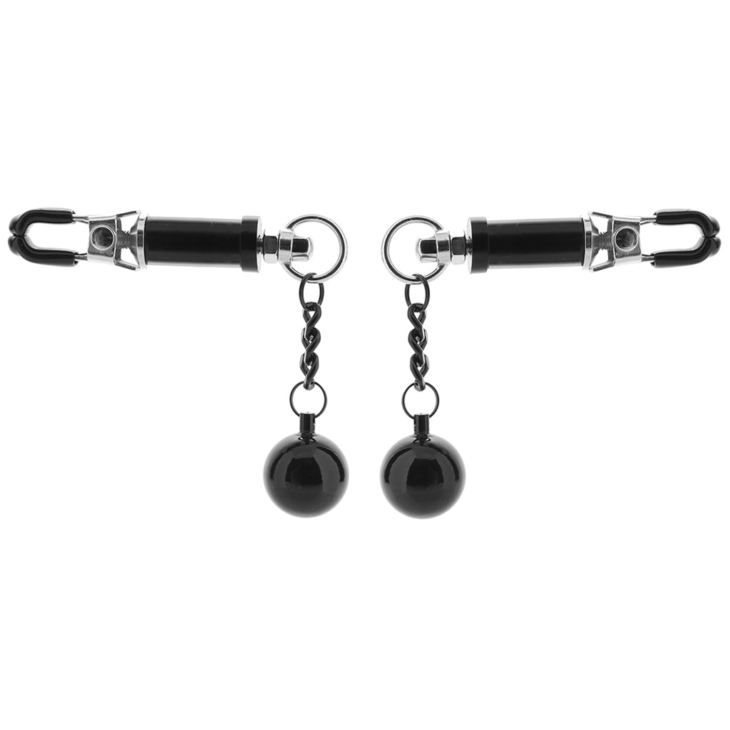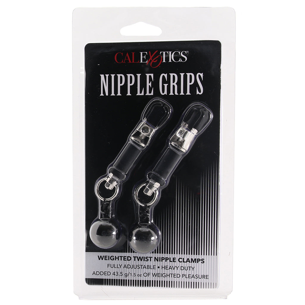 When it comes to nipple clamps, please know that you have TONS of exciting options. You've got your standard alligator clamps, some clamps vibrate, others are weighted, some are spring loaded - our point is that your/your partner's nipple play possibilities are nearly endless. If you're after an adjustable, weighty pair that can be heated or cooled if the temperature play mood should strike, CalExotics has you (and your nipples!) covered with the Nipple Grips Weighted Twist Nipple Clamps.