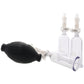 Once they're in place, two clear cylinder cups tug and tease your nipples. Meanwhile, the longer clit/outer sucker below works down below; you could even share it! Squeeze the bulb to activate inner pressure and enjoy!