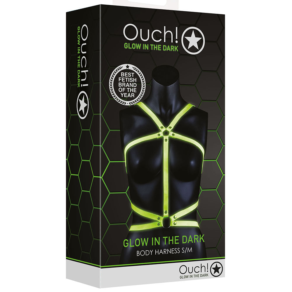 Ouch! Glow In The Dark Body Harness in S/M