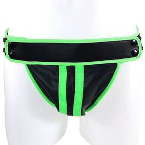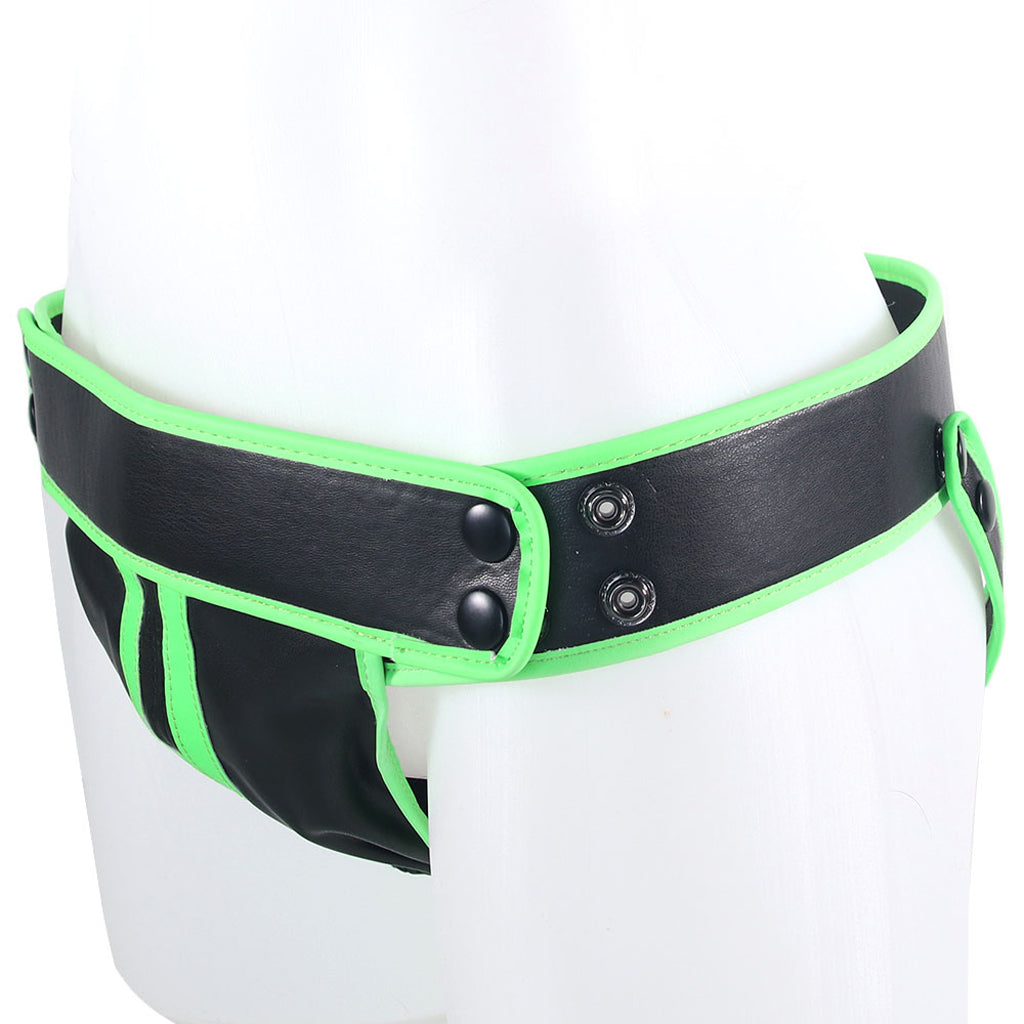 Slipping on and off quick and easy thanks to simple snaps, the Glow In The Dark Striped Jock Strap sits comfortably at hip-level. The comfy vegan leather keeps you covered yet massively accentuated, while behind, soft straps skim your butt cheeks, accentuating and lifting your booty.