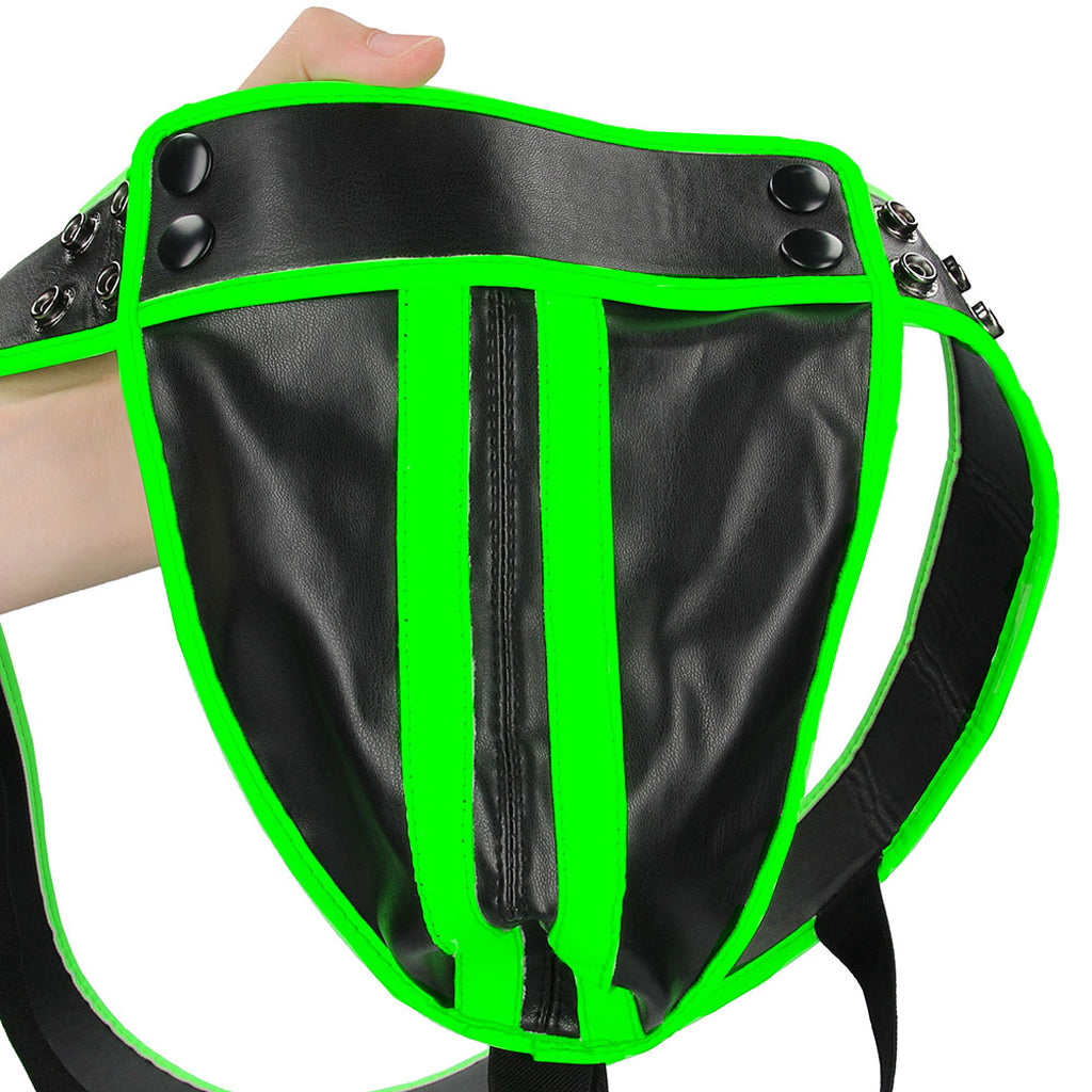 When it comes to classic fetish wear, is there anything sexier than a jockstrap? It shows off your/their package to perfection, it leaves the wearer's butt exposed to spanking, pinching etc. - in short, it's an exhibitionists (and voyeurs) dream! Shots' Ouch! line and the Glow In The Dark collection have come up with a fantastic, super-soft vegan leather version of the Jock. Plus (obviously, maybe), it glows in the dark. Thanks, Shots!