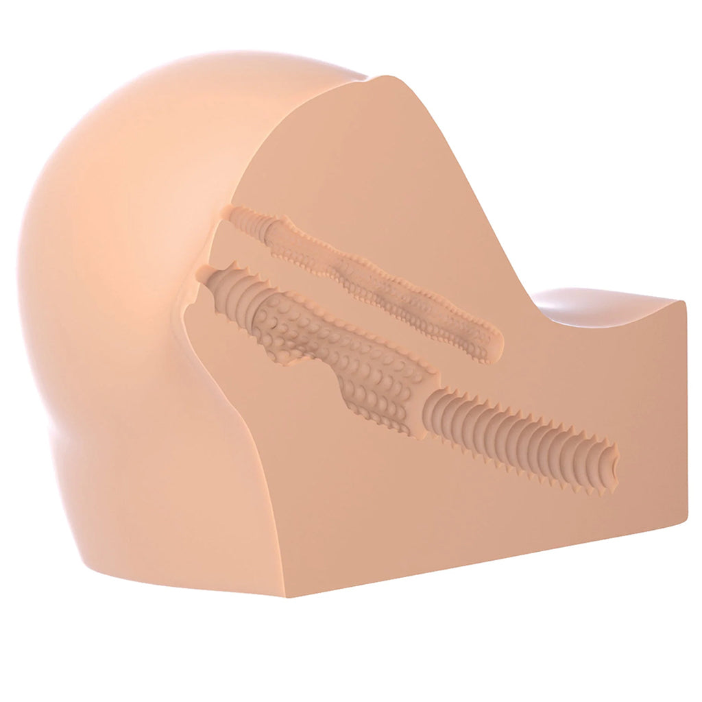 Flashing a tight soft-lipped pussy and tight pucker outside and two separate, massively stimulating textures inside, the bent-over Bubble Butt can be held in your hands, on your lap, or propped between pillows. Grab and squeeze the plump butt cheeks as tight as you want to take full advantage of inner canals designed to feel just like sex. A close ended shape naturally builds up suction with every thrust and contains the aftermath of the big finish.