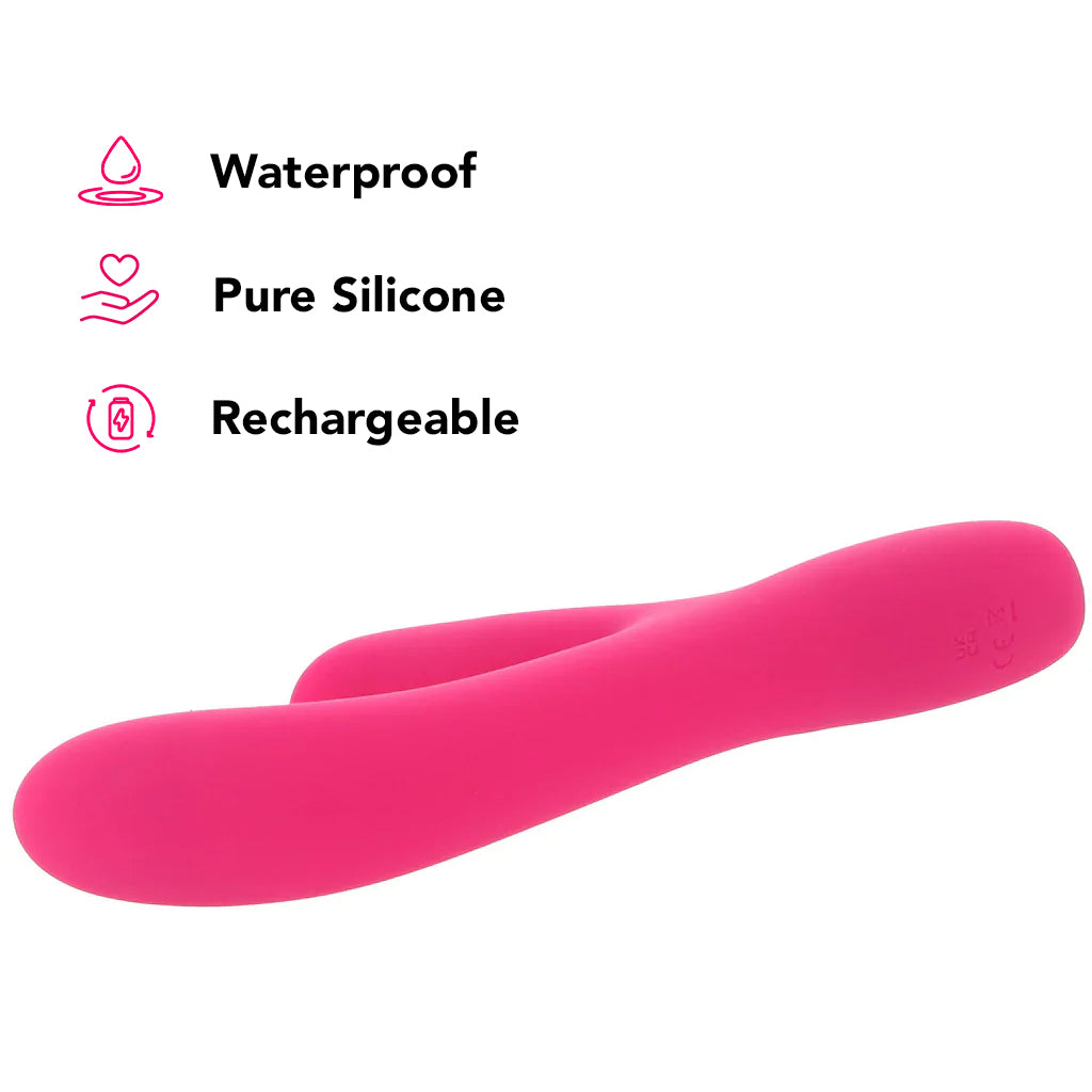 Designed to move with your body, the silky penetrator bends and flexes as it glides in, hunting down your G-spot and inner sweet spots with ease. At the same time, the wide, tongue-inspired stimulator buzzes outside, teasing your clit and other outer sweet spots for full-contact fun.