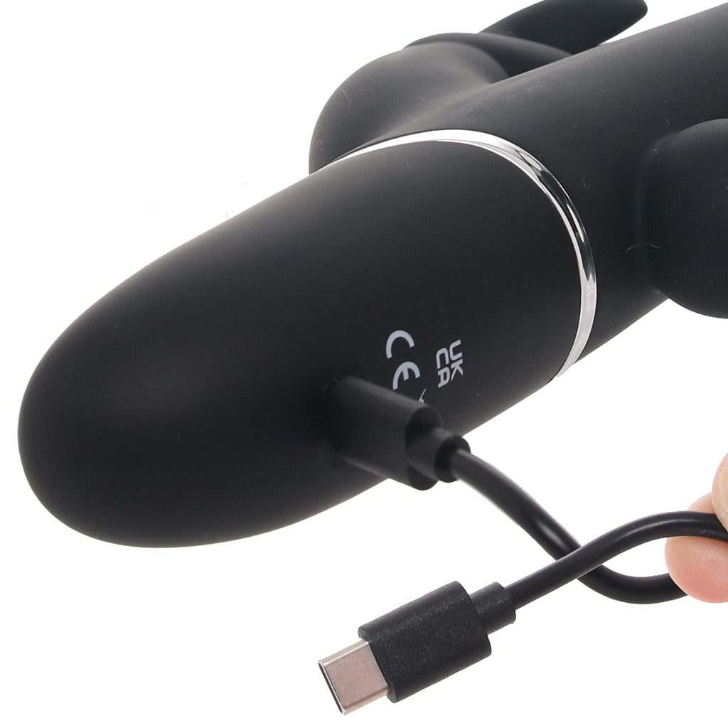 Made of body-safe silicone, the Triple Rabbit is waterproof, USB-C rechargeable, and ready to go again and again. Pair with water-based lube for the slickest ride, and clean with warm soapy water or toy cleaner when the party’s over.