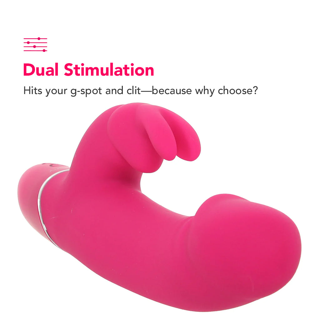 Thick and flexible, the G-loving shaft bends with your body as ten vibration modes pulse along every curve. While that’s happening inside, the bunny stimulator flickers and teases outside with three intensities, keeping your clit/outer sweet spots in on the pleasure action.