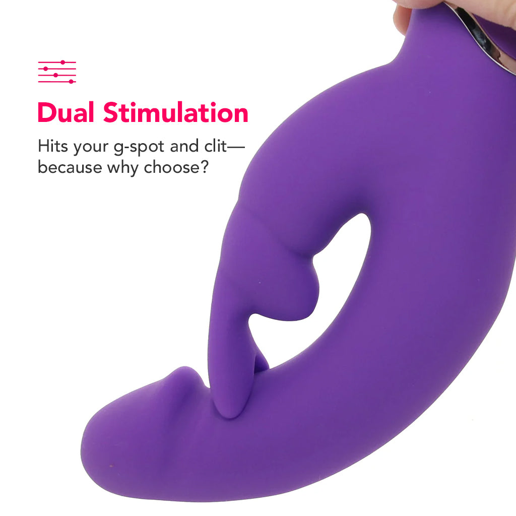 Thick and flexible, the G-loving shaft bends with your body as ten vibration modes pulse along every curve. While that’s happening inside, the bunny stimulator flickers and teases outside with three intensities, keeping your clit/outer sweet spots in on the pleasure action.