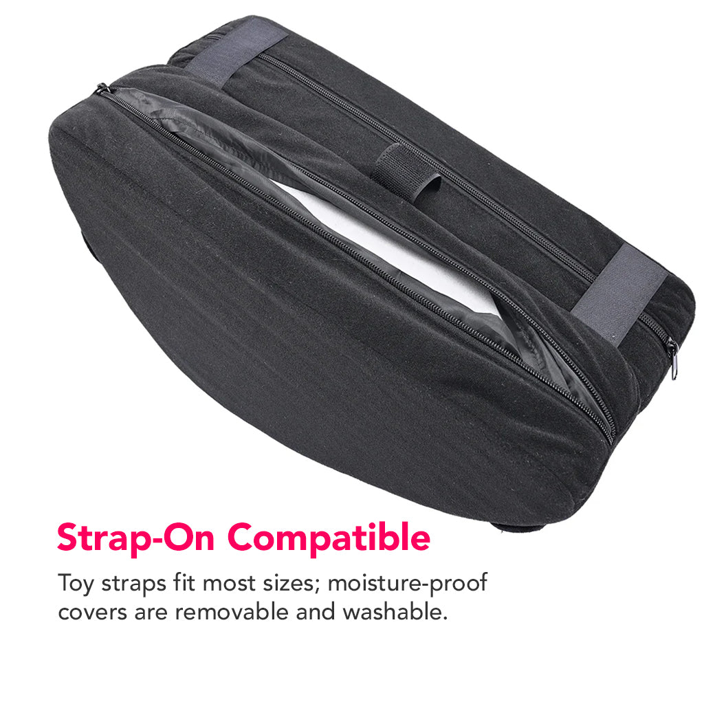 The modular Mount comes in two sturdy, supportive, super-soft foam pieces, one on the left and one on the right. Not only can you use them separately for extra support during sex and foreplay, but they'll also hold tight to your toys when anchored together with hook-and-loop straps. Hands-free playtime, anyone??