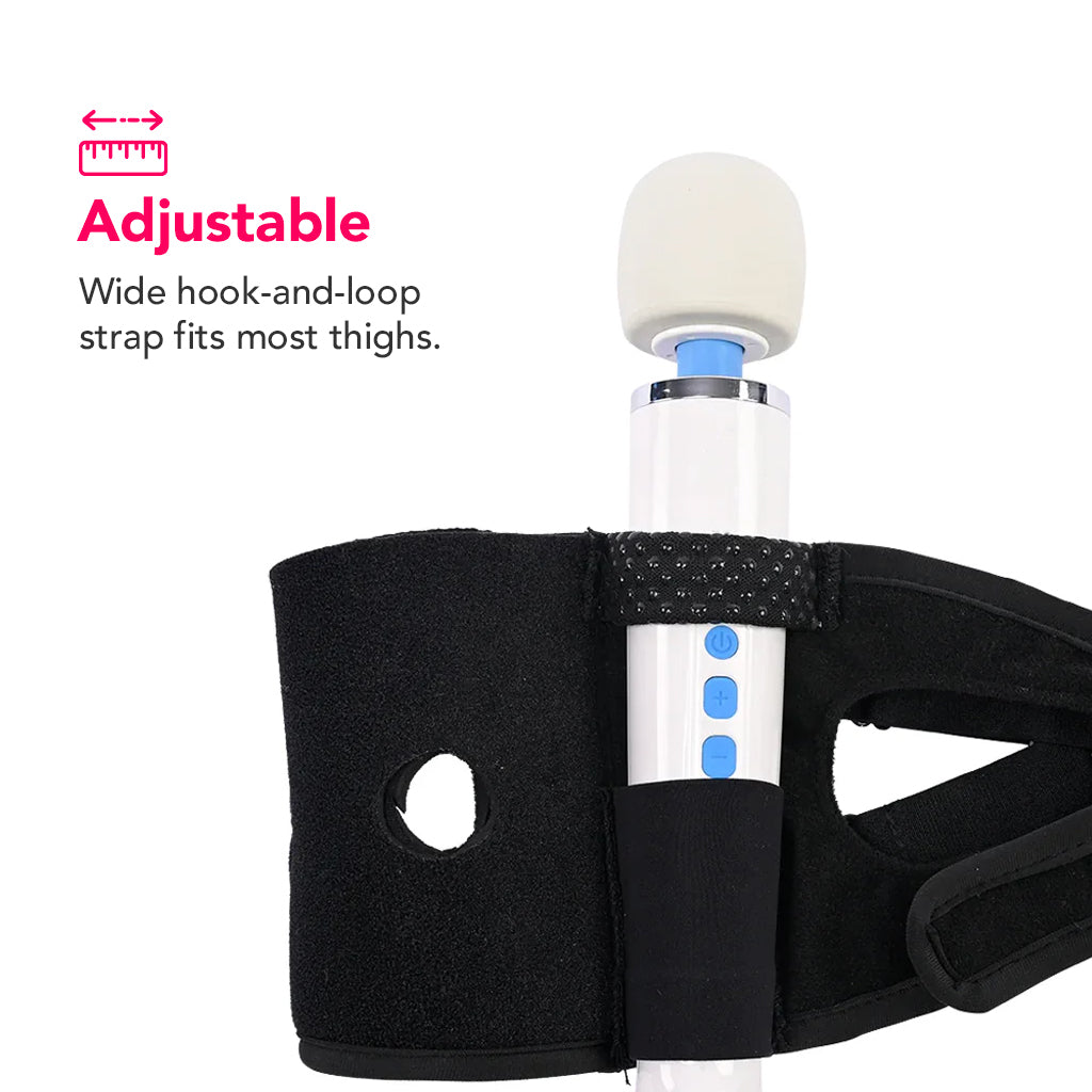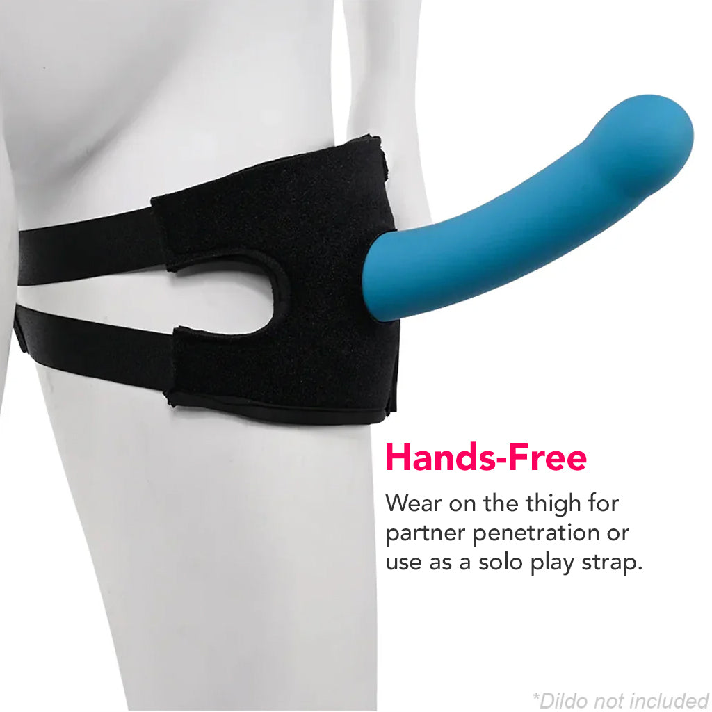 There are (at least!) two ways to play with the Strap. You can use it as a standard thigh strap-on for grinding and penetration with a partner or as a hands-free wand or other large vibe holder for yourself.
