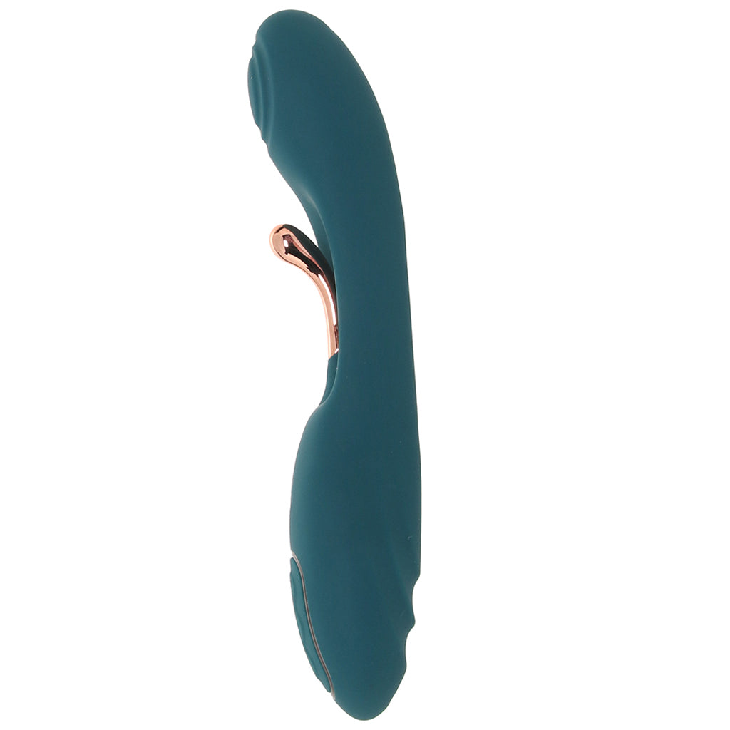 Up top, this silky, squishy silicone vibe's classic penetrator is all set to stimulate deep-down inner pleasure places with nine rumbly, bass-y vibration modes.