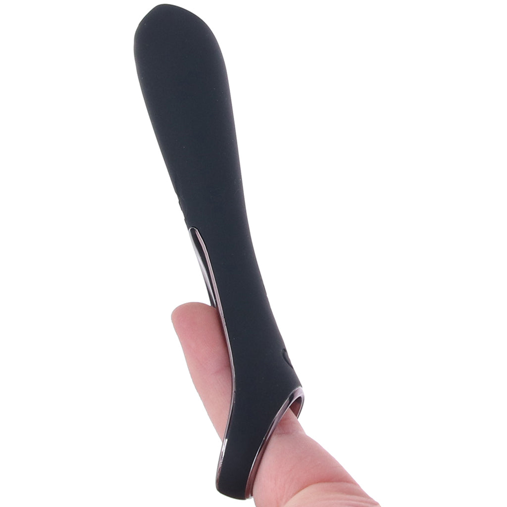 Sleek and sexily slanted, Ollo's design lets it become an orgasmic extension of your or a partner's hand. Slip the stable ringed base over a finger and direct the broad, fuller-coverage tip to sweet spots far and wide. Of course, you don't necessarily have to use Ollo as a finger vibe, but it's nice to have the option!