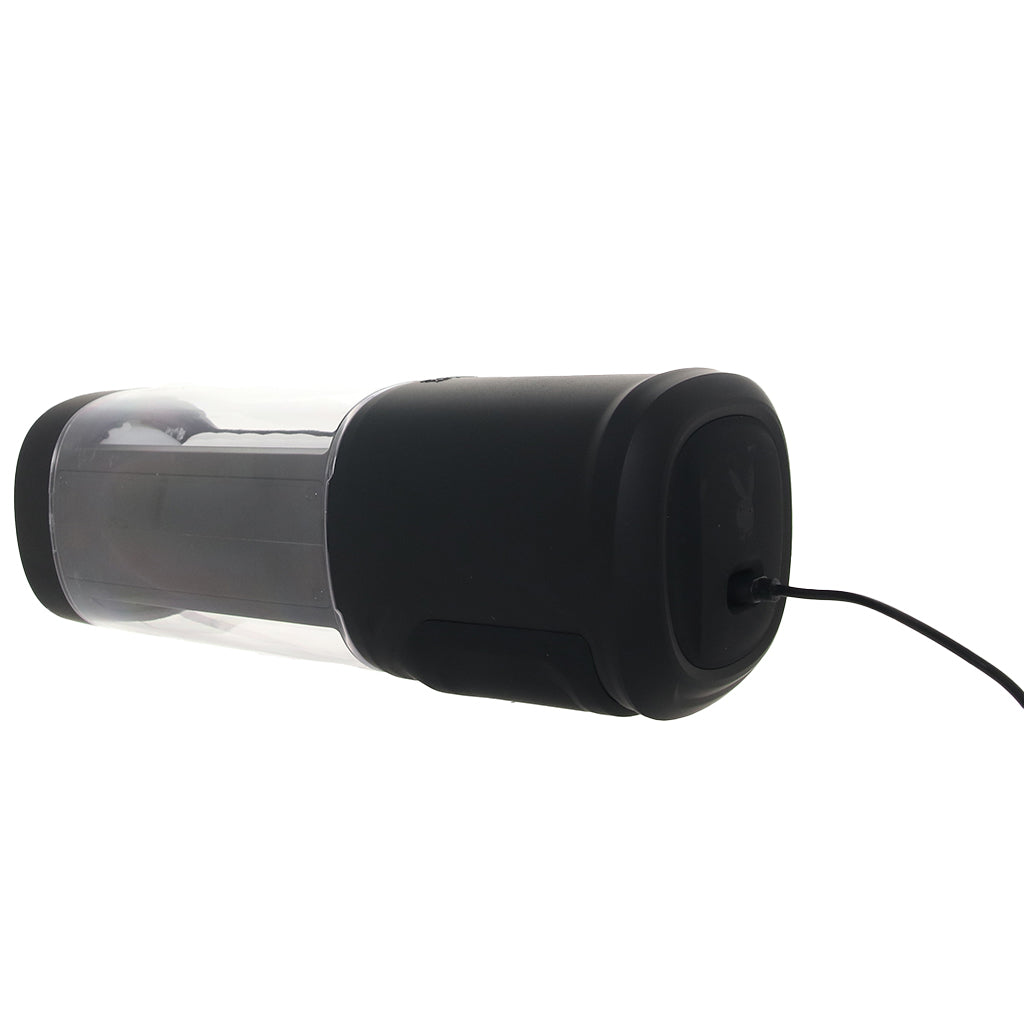 The clear, 5.5"/14cm canister lets you watch the action, and a padded stopper gives you a sweet, satisfying edge. And unlike certain past hookups, this one’s waterproof, USB rechargeable (the cable's included), and good to go with your favorite water or silicone-based lube.