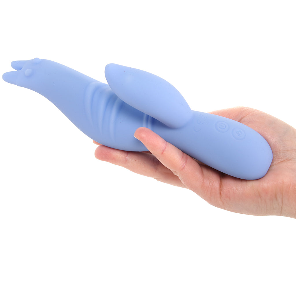 Up top, the seahorse-shaped tip and extra thick, ripple-textured shaft curve naturally toward your (or a partner's) inner hot spots, while a flexible wave teaser stays in touch with clits and outer pleasure places in general. It’s familiar bunny-style pleasure, just dressed up in seaside fantasy form!