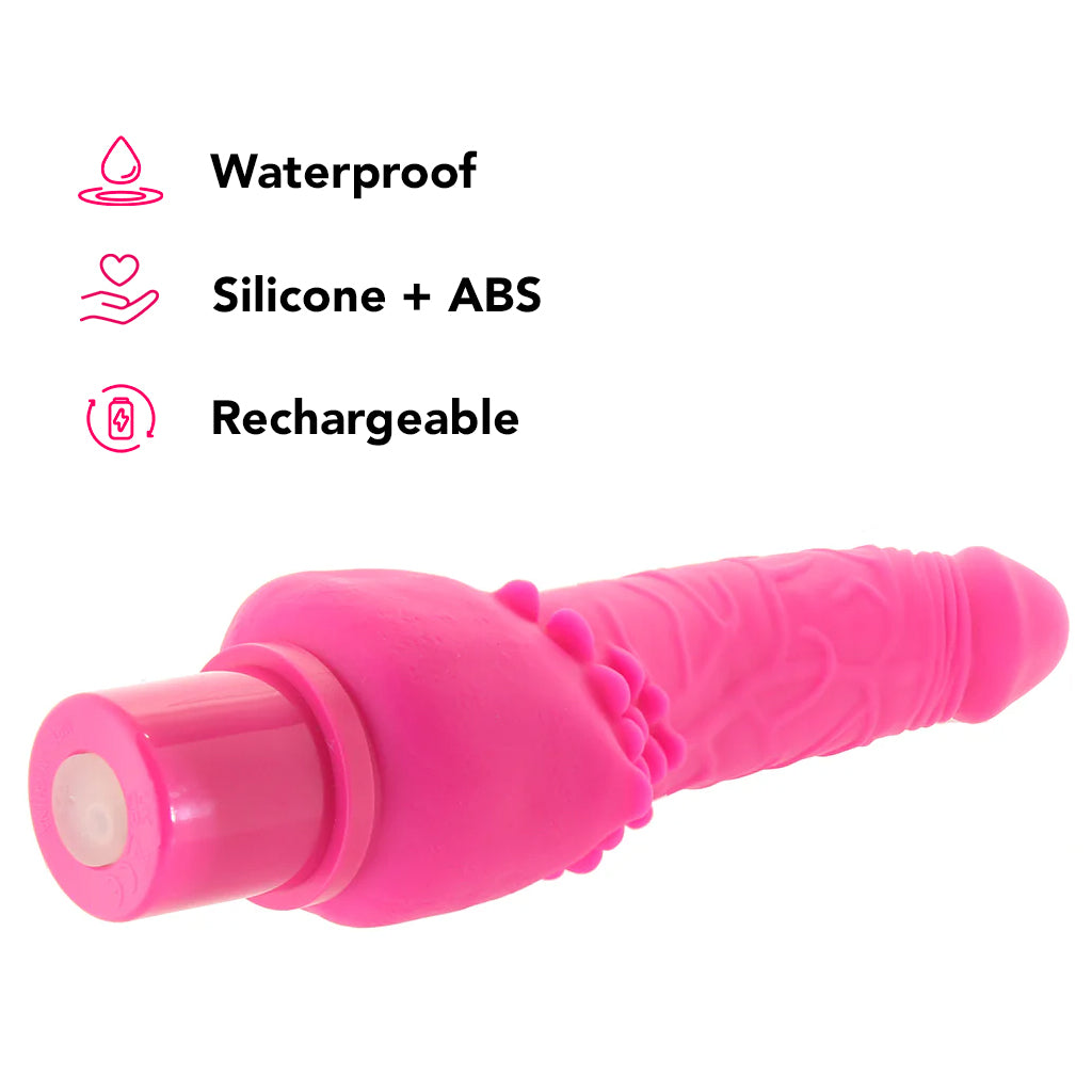 Whether it's being enjoyed inside or out, the classic-with-a-twist shape targets clitoris, nipples, g-spots and beyond. Speaking of the clitoris, though, the Cliterrific offers up a sexy patch of texture placed oh-so-strategically on a slightly swollen outcrop down near the base. As the shaft throbs away inside, that texture bumps and grinds against outer areas, depending on your position and location of individual sweet spots, of course. As always, please play carefully if you'll be putting the Cliterrific in the vicinity of your derriere, as there is no base to prevent slips.