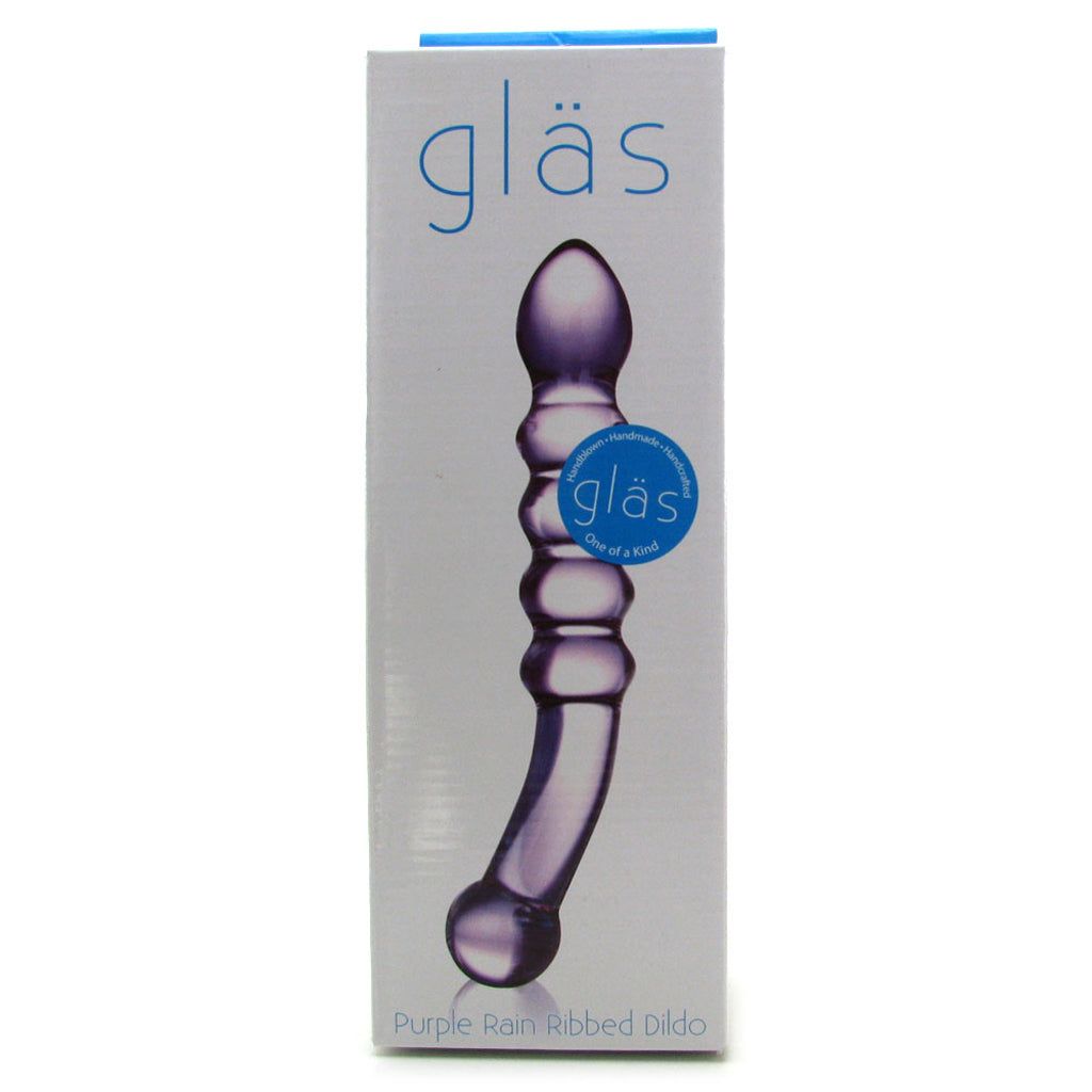 gläs Purple Rain Ribbed Glass Dildo