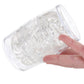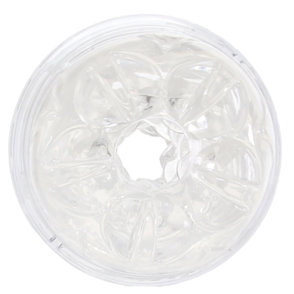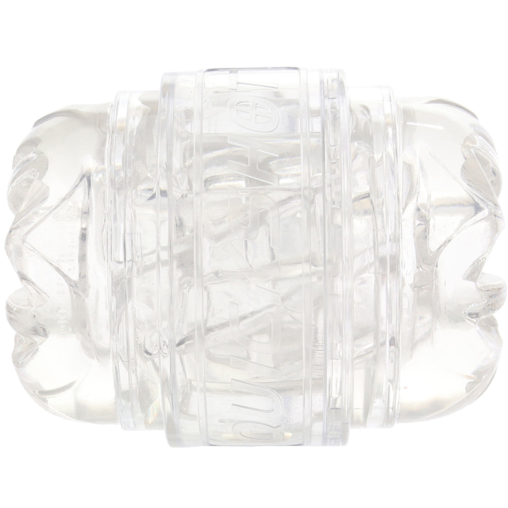 Tucked inside a compact little case, you'll find a double-sided sleeve in crystal clear Fleshlight-patented SuperSkin. Pop off the end caps to dive into either side or use it as a blowjob booster; either way, you (or they!) will love the wavy Vantage texture.