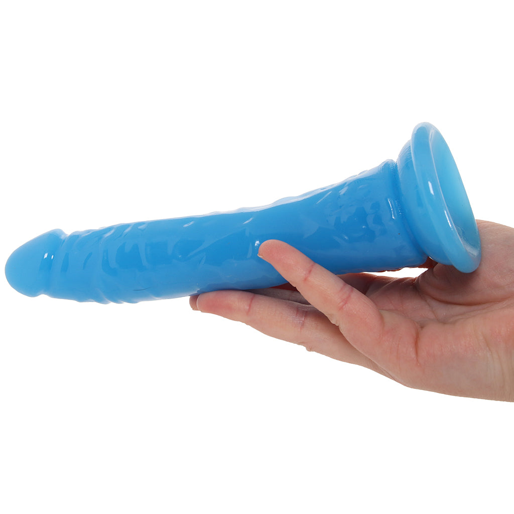 RealRock 7 Inch Glow-in-the-Dark Slim Dildo in Blue