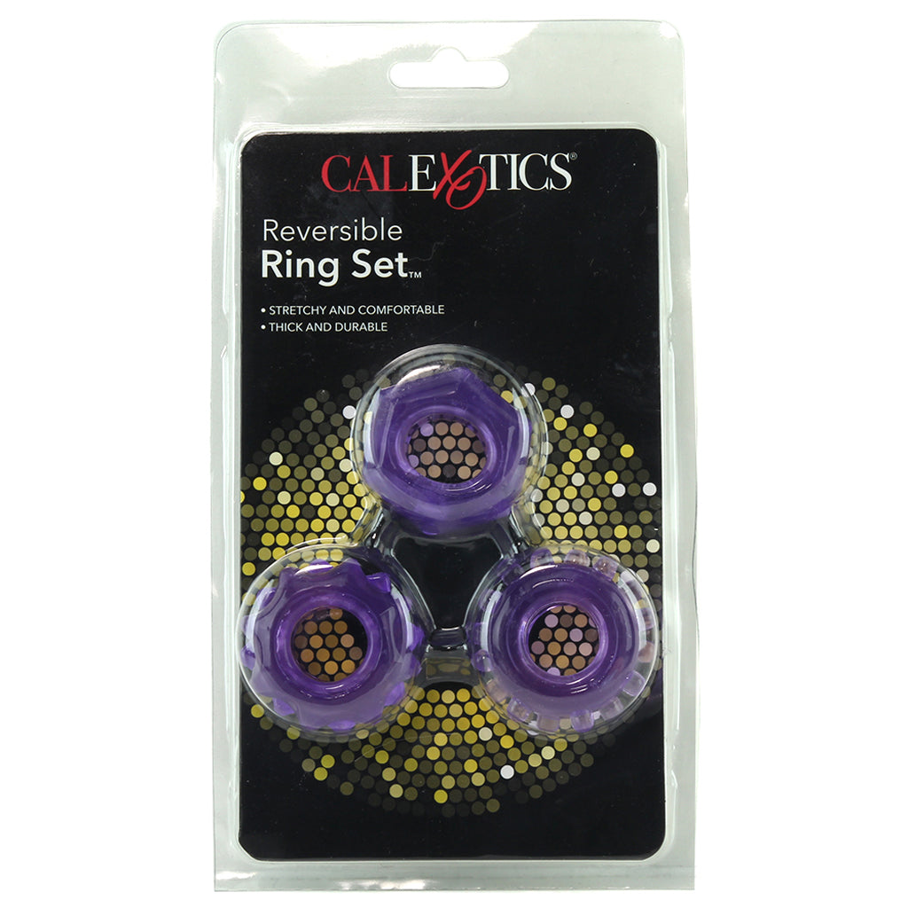 Snugly circling base, base and balls or scrotum alone, the 3 rings of CalExotic's Reversible Ring Set can work in combination or solo to enhance and improve sexual performance and pleasure.