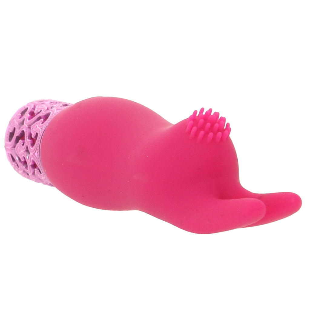 This petite popsicle-pink bullet is all about playful, focused stimulation, with a nubby little nose and two flickery ears that love to tease and tap across your favorite sweet spots. The compact, glow-base design makes it easy to guide over clits, nipples, the head of a penis, outer-butt exploration, and anywhere curiosity wanders.