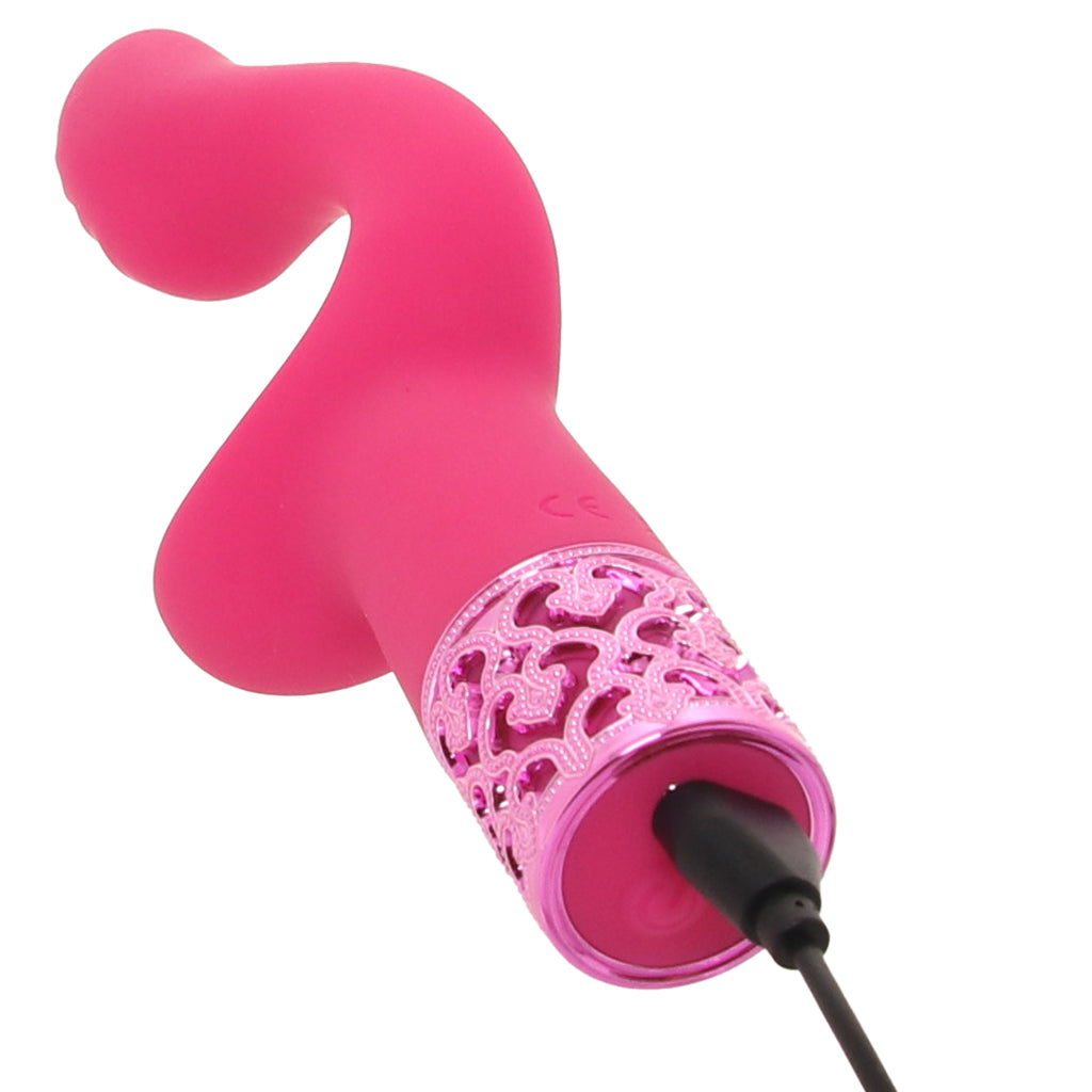 The silky silicone Royal Gems Majestic is hypoallergenic, skin-safe, and easy to clean and care for. Wash it with soapy water before and after playtime, or use a favorite toy care fluid/foam. You can add slipperiness with any water-based lube you love. The Majestic is USB rechargeable, and the cord is included. It's splash-proof, but it shouldn't be submerged.
