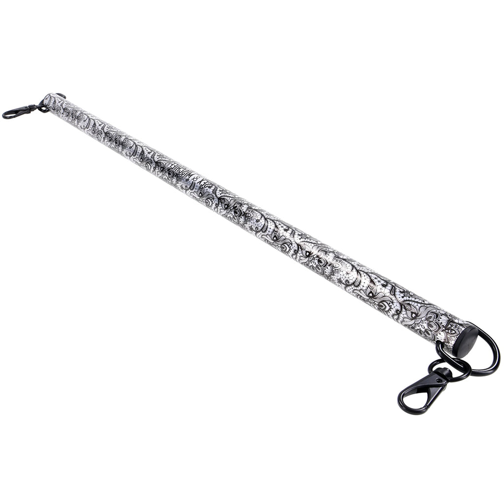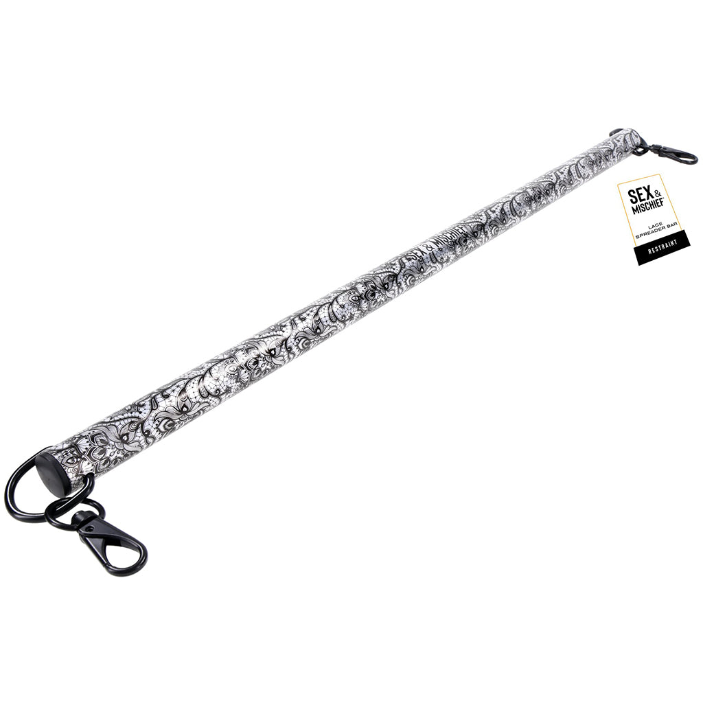 With sultry black lace etching over soft brushed silver metal, this elegant bar doesn’t just keep things wide open... it does it with style. Whether you're dipping a toe into kinky fun or going full glam dom(me), this beauty brings the drama in the best way.