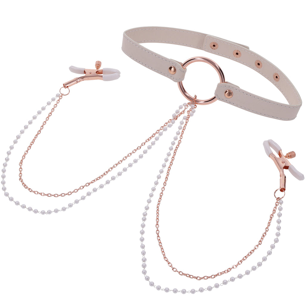 S&M Peaches 'n CreaMe Collar with Nipple Clamps