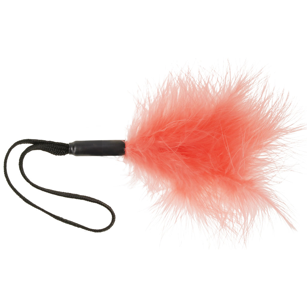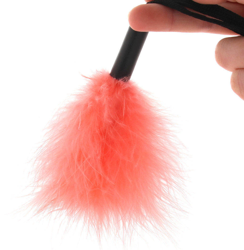 Crafted with ethically sourced turkey feathers, it’s about 5.5"/14cm long (minus the strap) and designed for graceful, gentle sensation. A coordinating wrist loop keeps the tickler secure so you can stay connected while anticipation builds with every flutter.