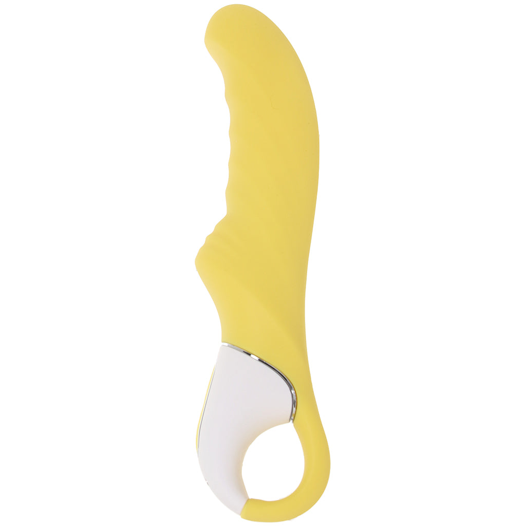 This bright, flexible vibe is all about feel-good exploration for any body and any sweet spot! The long, curvy penetrator bends easily to follow your shape, making g-spots, prostates, nipples, clits, and anything else you like to play with an easy target. The looped handle keeps your grip secure, even when things get intense.