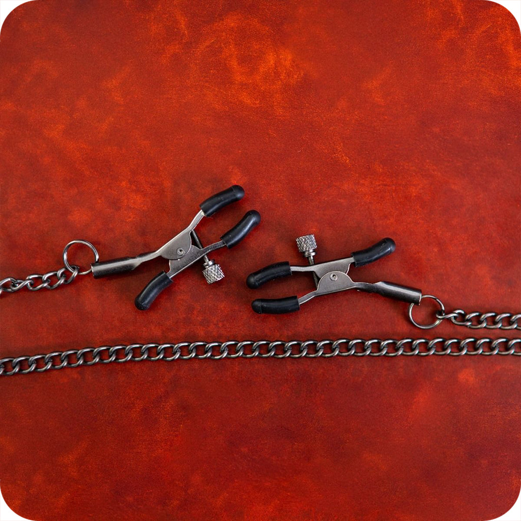 A sleek, bust-skimming chain connects the pair, adding gentle tugging and eye-catching movement every time you shift or your partner gives it a pull. Wear them as part of a slow seduction or hand the chain over and see where things go.