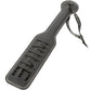 This sturdy vegan leather Paddle has two distinct sides—one smooth and one with 'MINE' cutouts. Use whichever suits the mood of the moment to spank or be spanked, but be warned: the 'MINE' side might leave an imprint!