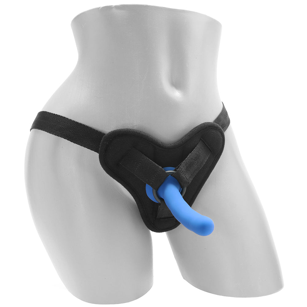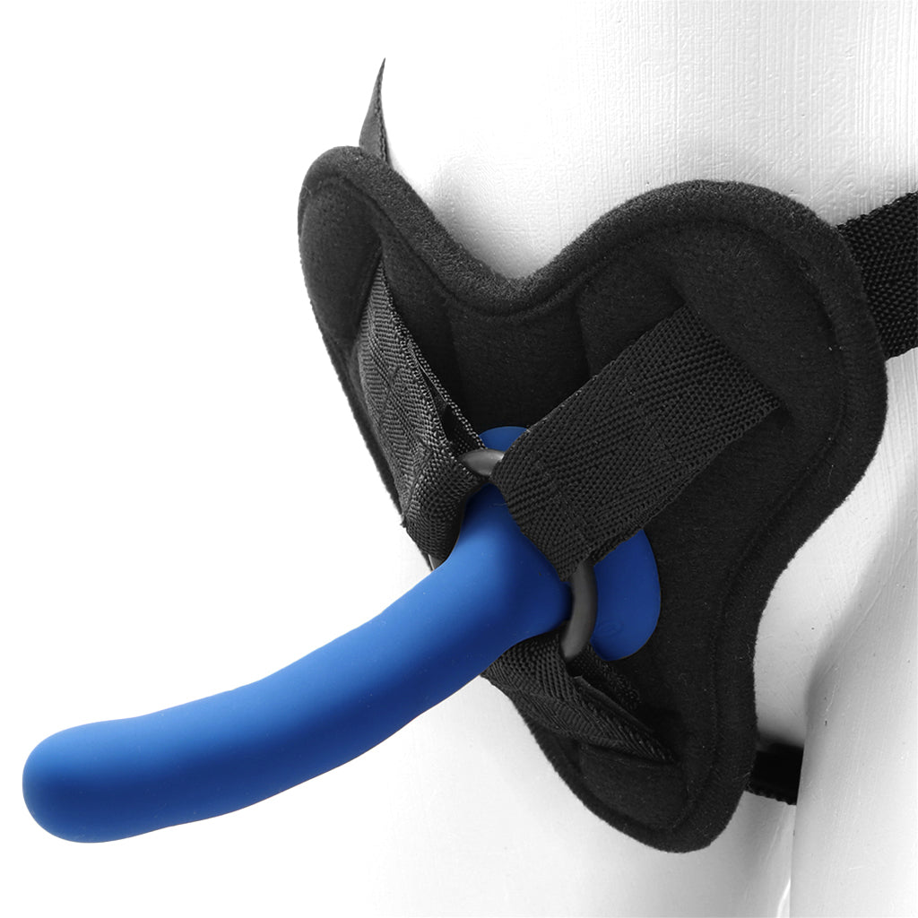 Hailing from a brand new super-special black and gold collection, the New Comer's Strap On Set is lightweight, easy to maneuver, fully adjustable and comes complete with a slim silicone dildo in bright blue. The included dildo is absolutely perfect for pegging and anal play general, but it's also perfect for g-spot seeking and overall penetration adventures. We absolutely love that the dildo can be easily swapped for just about any other toy with a flared base - just slip it into through a durable O-ring.