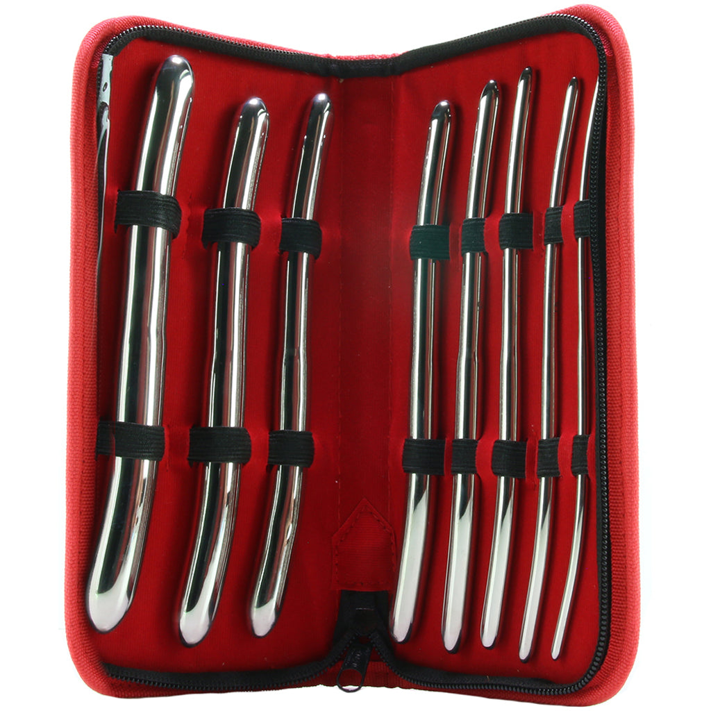 In body safe stainless steel, the 8 Hegar sounds are naturally extremely firm and quite weighty. Each Sound is identical in shape - there's a slight curve to each tip and lots of very subtly widening length in between. The smallest rod measures in at 8" (20.3cm) long and just over .11" (3mm) in smallest diameter, while the largest measures 8" (20.3cm) long and about .67" (1.7cm) in diameter. There are 6 sizes in between, so you'll easily be able to find one that suits your need, desire or experience level.