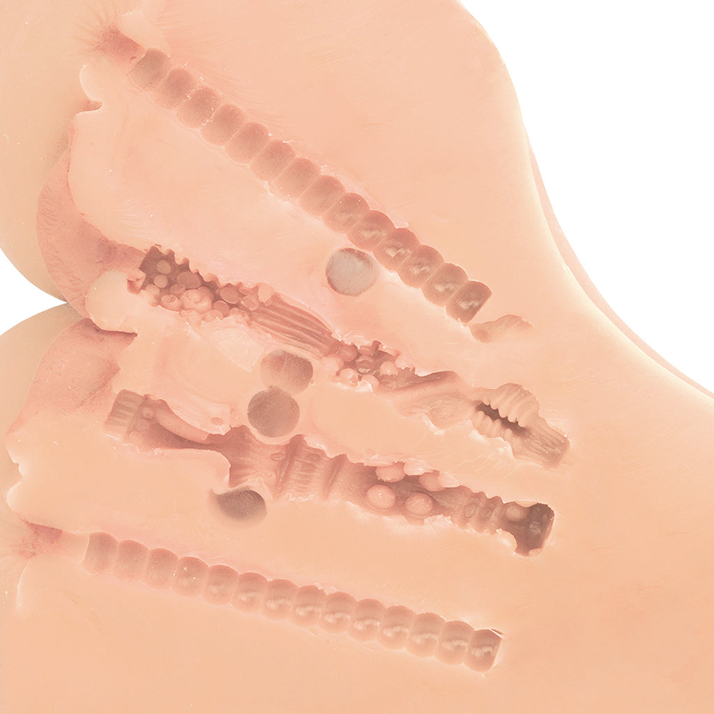 This plump, squeezable full(er) sized stroker features four separate, anatomically correct inner chambers, each engineered to feel as lifelike as (in)humanly possible. Plus, it's closed off around the back, so suction will naturally build as you or they thrust.