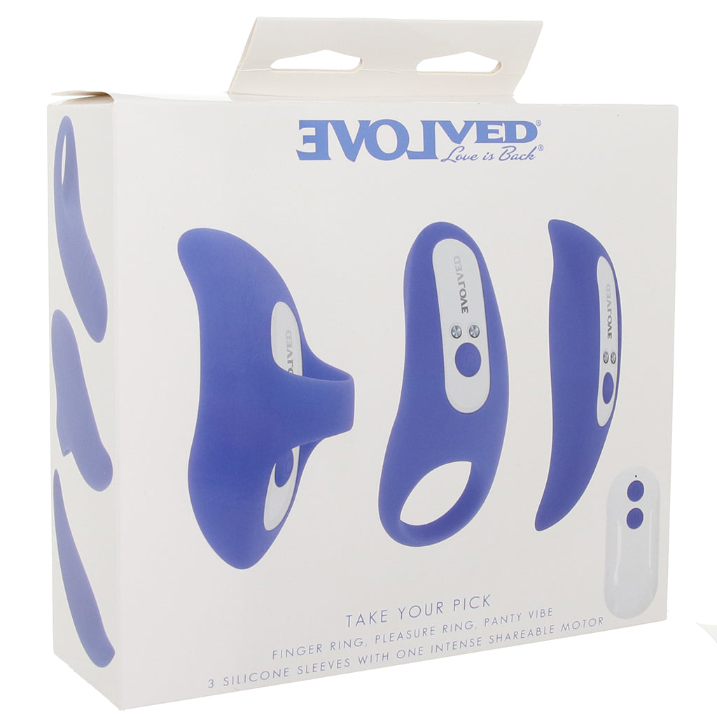 One bullet, three clever sleeves, and tons of ways to put that vibration to work! Meet Evolved Take Your Pick Bullet Set.
