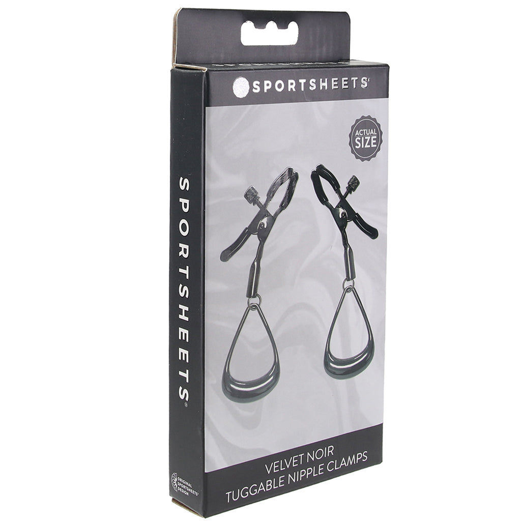 Love to have your nipples licked, flicked, pinched, and tugged? There's a toy (two actually!) for that: Sportsheets' Velvet Noir Tuggable Nipple Clamps.