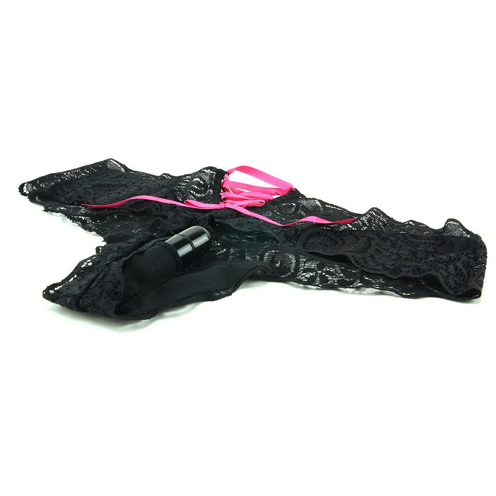 Beautifully designed with a soft, stretchy lace waistband, a cotton lining and pink corset-style lacing up the back, these panties boast a bare-all thong style that won't leave telltale lines under clothing, and let a lover's hands roam unencumbered. They can absolutely be worn as lovely lingerie sans vibrator, but the combination is truly blissful. Simply slip the vibe into its pocket, leaving the base pointing upward for easier control. As for the petite bullet, it's firm and precise, nestling unrelentingly against outer sweet spots, whether worn in the panties or manually maneuvered in hand.