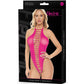 Up top, this barely-there one-piece features a spaghetti-strap halter and shredded details. It's cut sky-high on the hips and the thong style seat fully exposes your booty. Pair it with other favorite lingerie pieces, or rock it solo.