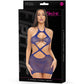 Up top, this sizzling net mini features a halter neck and big cutouts; the tiny skirt hugs all your curves down below. Pair it with some other favorite lingerie pieces, or rock it solo.